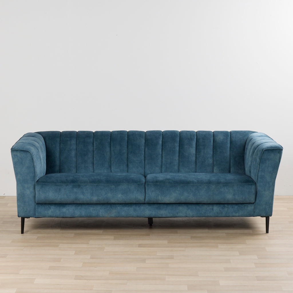 The Fabian Sofa is vintage inspired with a timeless elegance. With the fluted back and antique velvet, it will add character to any space.